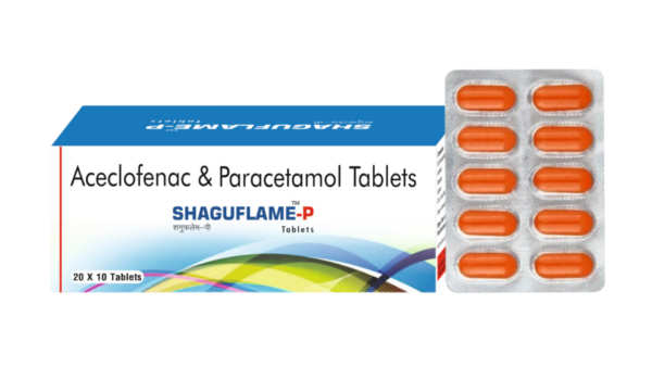 SHAGUFLAME-P tablets combine the powerful anti-inflammatory properties of Aceclofenac with the analgesic and antipyretic effects of Paracetamol. This combination is designed to provide rapid and effective relief from a variety of painful and inflammatory conditions.